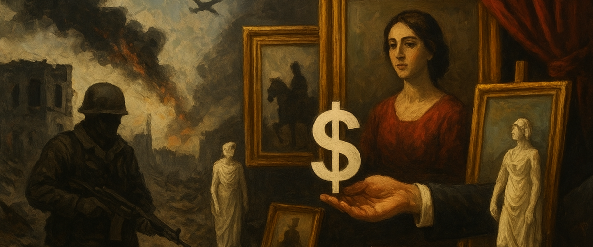 یک تلاقی میان اقتصاد و خلاقیت که نشان می‌دهد تبعات جنگ، محدود به میدان نبرد نیست و تا اعماق جامعه و هنرگسترش یافته و انعکاس می‌یابد اما با این وجود نمی توان منکر حمایت فرهنگی در فضای داخلی بازار هنر ایران شد